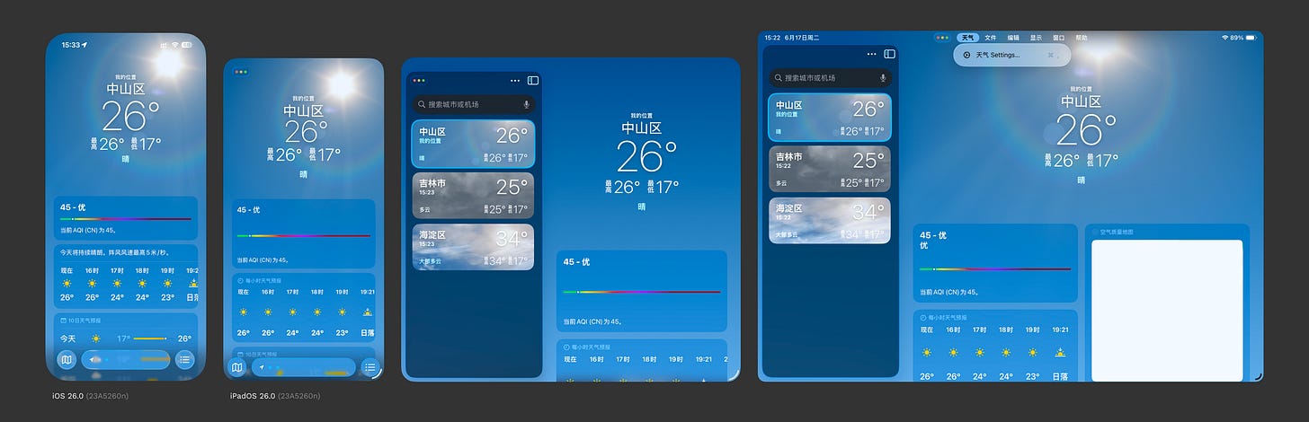 This doesn't seem entirely similar to web adaptive design; sometimes, app structures need to be reorganized to accommodate sidebars. iPadOS previously had sidebars as well, but this visual alignment with macOS offers greater uniformity and freedom. Looking back, when iPads ran iOS apps, they could only be enlarged or shrunk within a black screen. Now, even non-adapted apps can run in windows (proportionally).