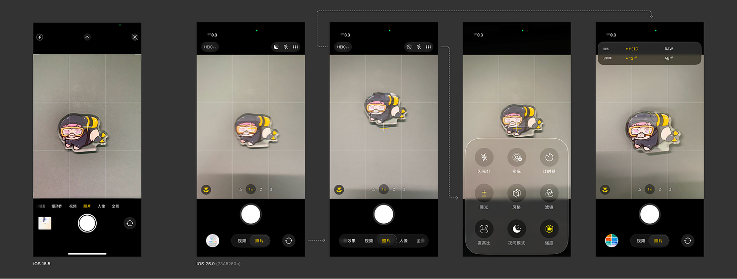 In iOS 18.5, you could clearly see the camera's shooting modes; after modification, only two can be seen at most. Don't worry, Apple has noticed this and implemented a process to compensate for user perception: