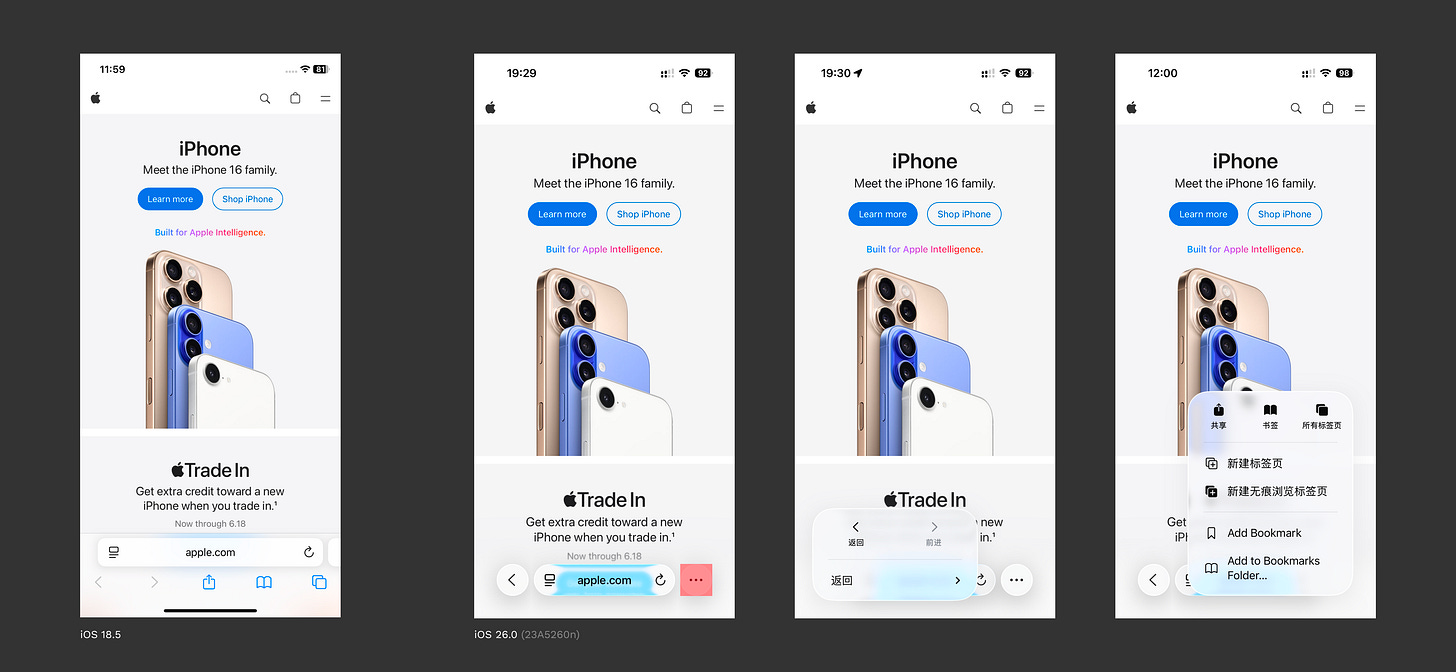 The first major redesign of Safari, moving the URL input bar to the bottom, was something I supported, and Apple's subsequent experience compatibility has been commendable. However, this latest change, I would call it the "pinnacle" of the new design language.